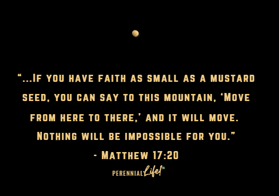 A mustard seed is tiny, about one millimeter, yet it can grow into a tree 30 feet tall. Similarly, our faith, even if small, can do incredible things. Pray, prepare, move your mountains! - Pam @ PerennialLIFE™